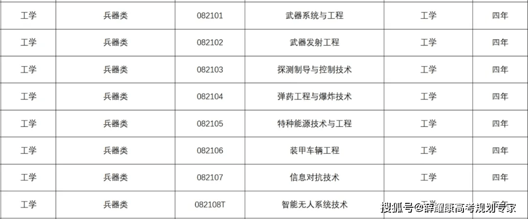 刀兵类专业属于工学门类,学制四年授予工学学士学位,共包罗兵器系统工程、兵器发射工程、探测制导取节制手艺、弹药工程取爆炸手艺、特种能源手艺取工程、拆甲车辆工程、消息匹敌手艺、智能无人系统手艺,八个具体本科专业(如下图)。