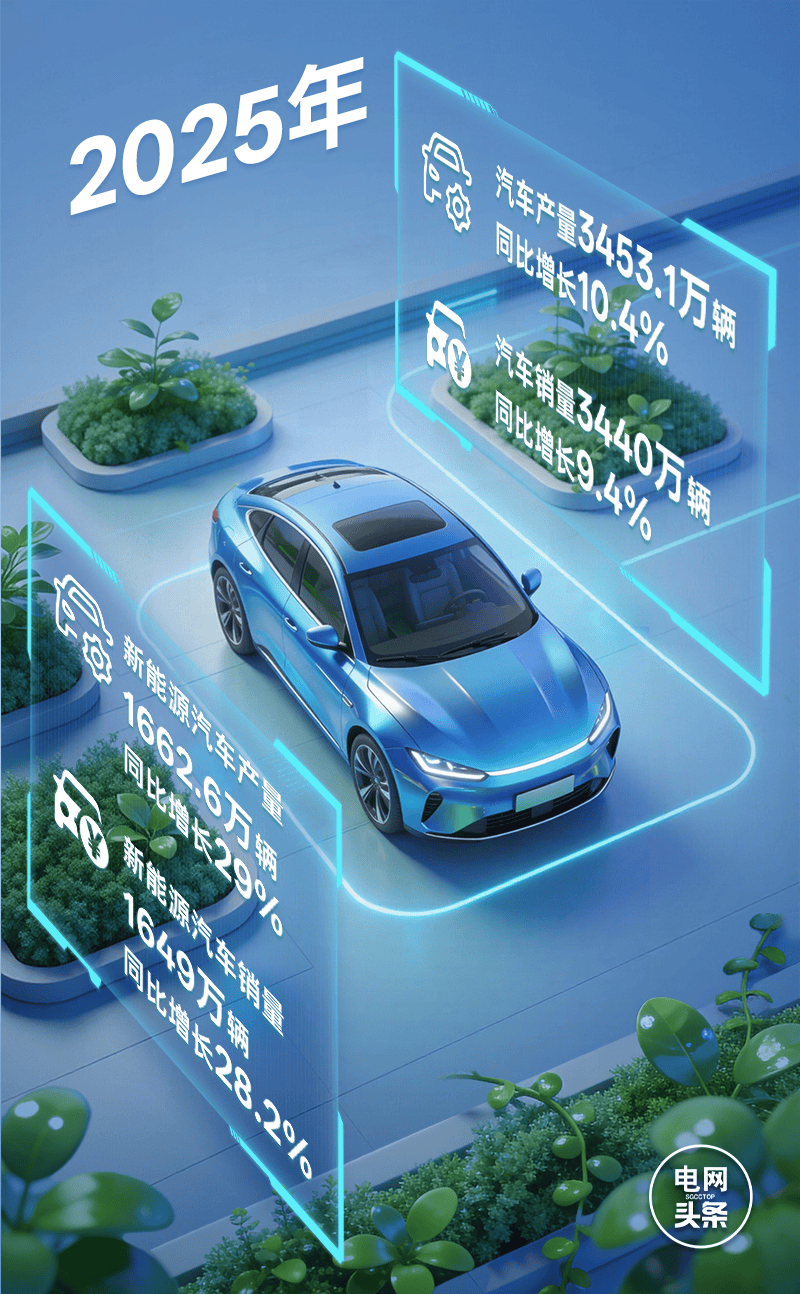 中国汽车工业协会发布的数据显示,2025年,我国汽车产销量均冲破3400万辆,新能源汽车产销量冲破1600万辆,国内市场占比跨越50%。